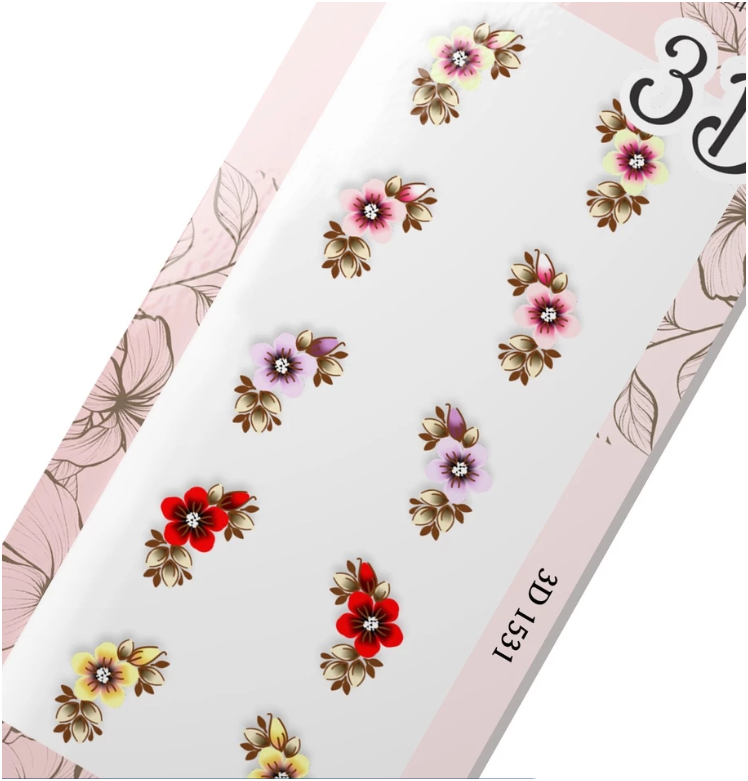 Adesivo 3D de Unha-Flores Mistas-3D 1531