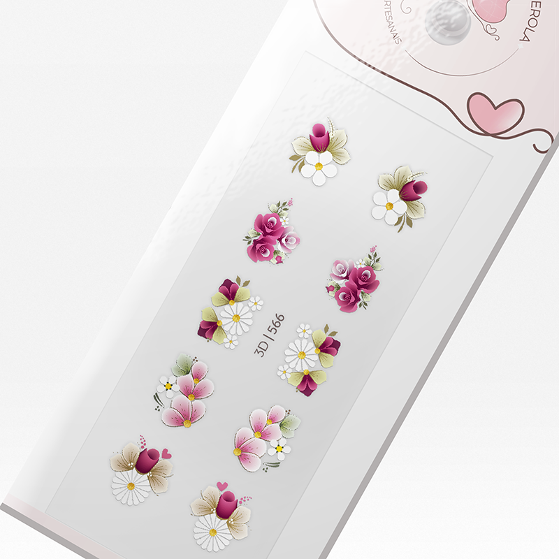 Cartela com 10 unidades. Pode ser usada com qualquer cor de esmalte, pois seu fundo é banco, permitindo assim que a cor da película mantenha-se destacada. Durabilidade de até 30 dias nas unhas.